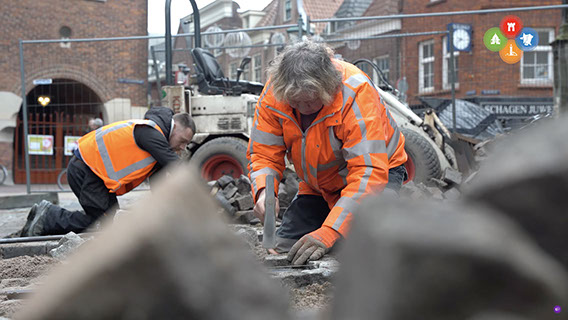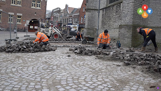 De bestrating rondom de Grote Sint-Laurenskerk in Alkmaar was er slecht aan toe. Daarom zijn de mannen van Verberne Baron B.V. bezig met het renoveren van de straat.