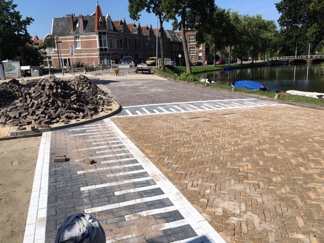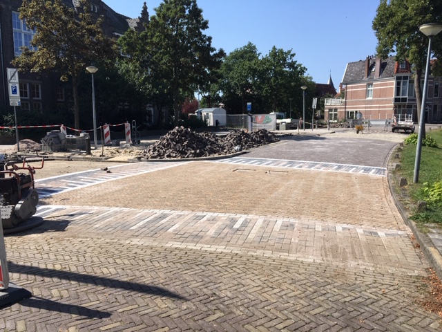 Verkeersremmende maatregelen in de vorm van verkeersdrempels op de Nieuwlandersingel ter hoogte van de Sint Adelbertusschool in Alkmaar.