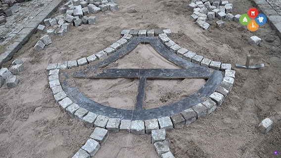 Inderdaad, de hele klus is niet zomaar geklaard. Naast dat er wel bijna 280.000 stenen stuk voor stuk moeten worden neergelegd, heeft de bestrating rondom de kerk een bijzonder patroon. Maar daar hadden de mannen wat slims op bedacht. “We hebben speciaal een mal gemaakt zodat we het motief wat er al lag kunnen herbestraten”, vertelt Yoeri. “We zijn nu meer dan over de helft.”