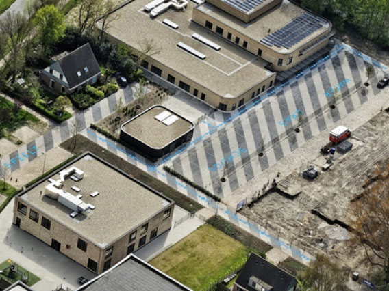 Bij de twee nieuwe scholen VSO-school en de Prinsenhof aan de Amstelstraat in Oudorp leggen ambachtelijke stratenmakers een parkeertapijt aan. Het gaat behalve om een functionele bestrating om een kunstopdracht. In het straatwerk verweven zij woorden, waarvoor een bijzondere blauw-glazen steen wordt gebruikt.Het patroon is ontworpen door de Amsterdamse kunstenares Agnes van Genderen. Zij heeft dit tapijt van stenen ontworpen met het idee dat in dit gebied visuele rust en eenheid nodig is, voor de kinderen, maar ook omdat de ruimte gebruikt wordt om te spelen en om de kinderen met auto’s te brengen en te halen. Om de scholen en de buurt te verbinden heeft zij een looproute bedacht, die ook met blauwe stenen wordt gelegd.